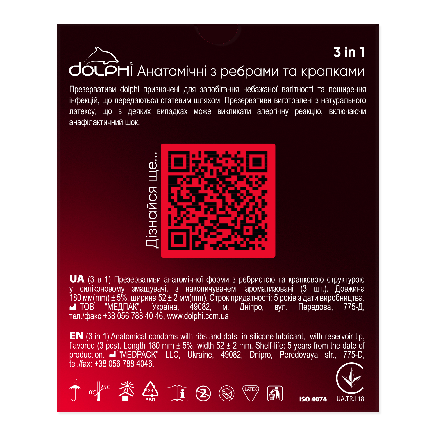 Dolphi 3 in 1 Три в одному з крапками та ребрами, 3 шт