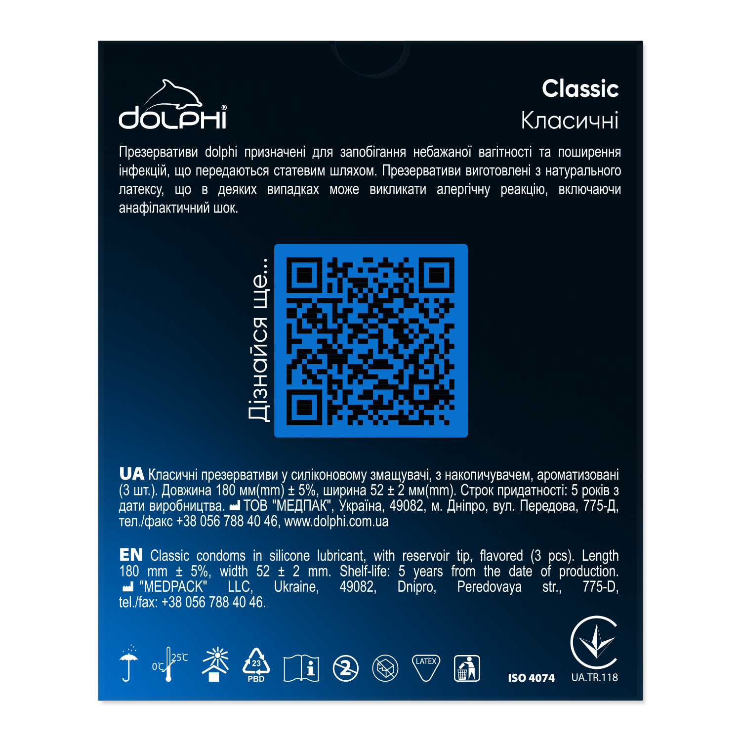 - Класична технологія виробництва DOLPHI Classic забезпечує надійний захист парам, які перебувають у відносинах, від небажаних наслідків: вагітності та захворювань, що передаються статевим шляхом.