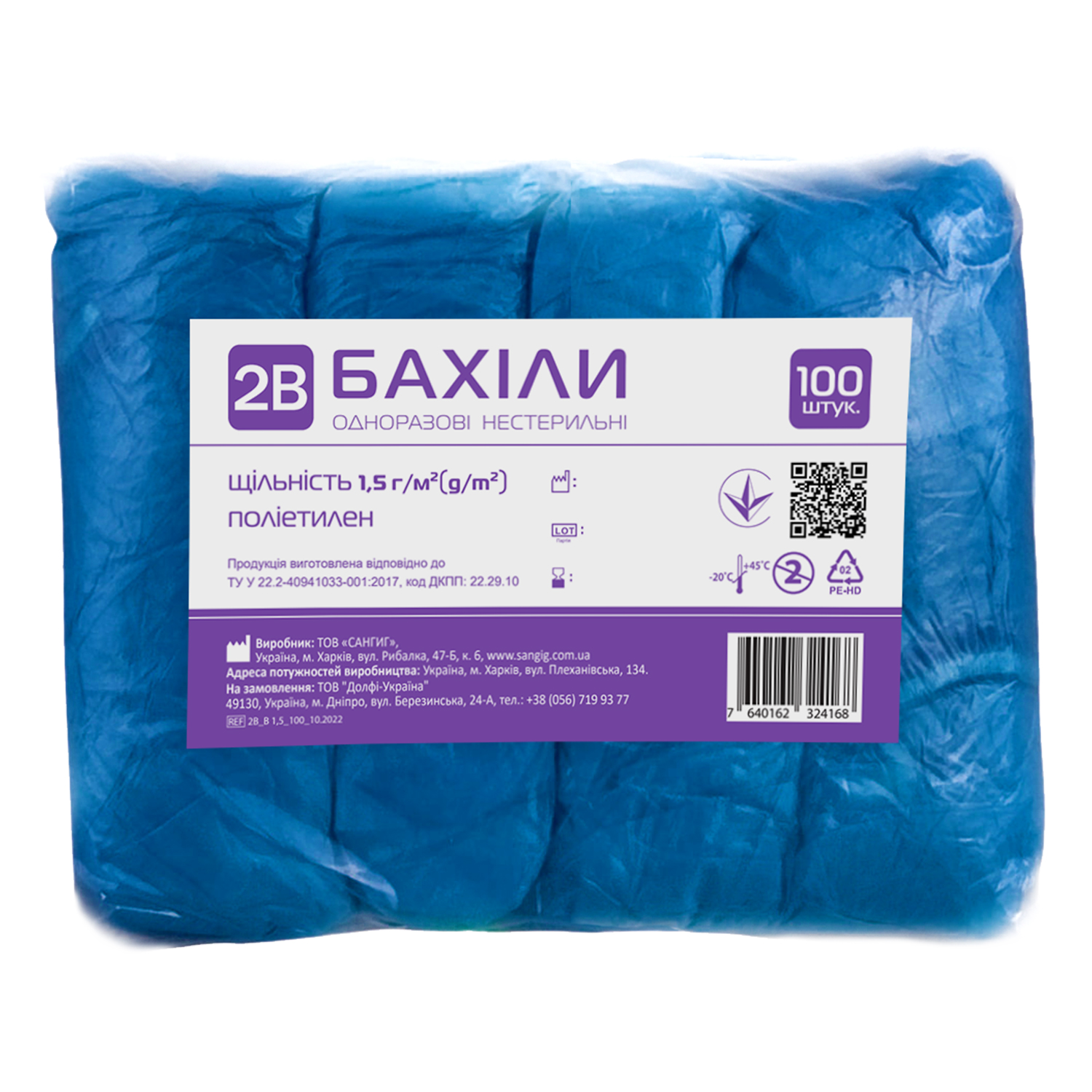 Бахіли медичні - це одноразовий захисний засіб, який широко використовується в приміщеннях, де особлива увага приділяється дотриманню норм гігієни. У стоматології, великих і дрібних медичних установах вже стало нормою взувати відвідувачів (пацієнтів) в бахіли перед тим, як вони пройдуть в кабінет лікаря. Бахіли медичні одноразові ТМ 2В представляють собою поліетиленові мішечки на гумці. Поліетиленові чохли для взуття захищають від занесення в приміщення бруду, хвороботворних бактерій, які можуть бути на вуличному взутті пацієнта (відвідувача).