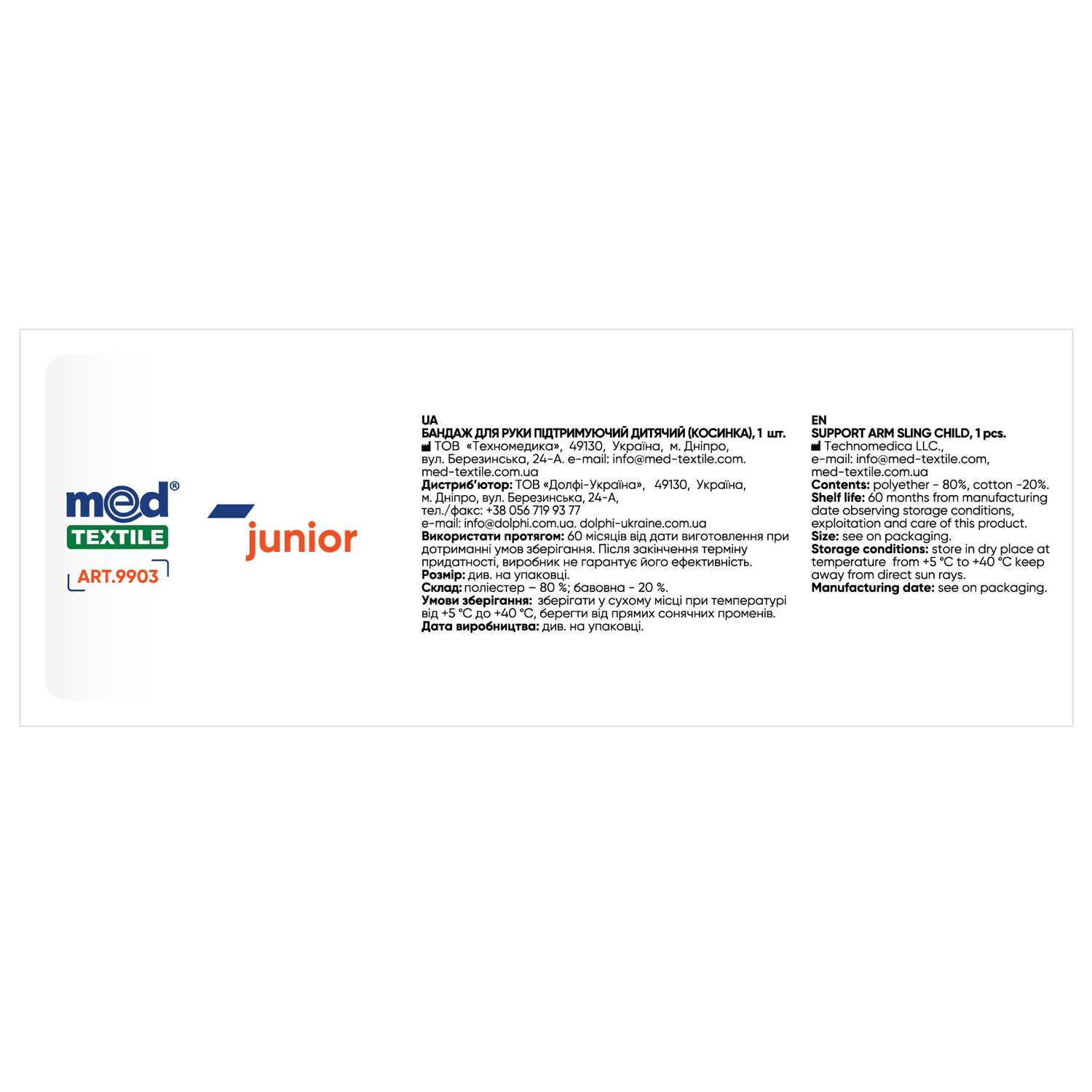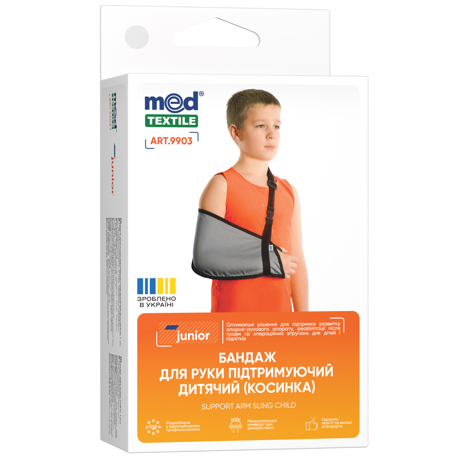 Бандаж використовується при травмах плечового суглоба, передпліччя, ліктьового суглоба чи ключиці, а також у післяопераційний період у дітей віком від 3 до 12 років. Допомагає знизити навантаження на м’язи та суглоби, забезпечує зручну підтримку руки у фізіологічно правильному положенні та надійну фіксацію, запобігаючи небажаним рухам.