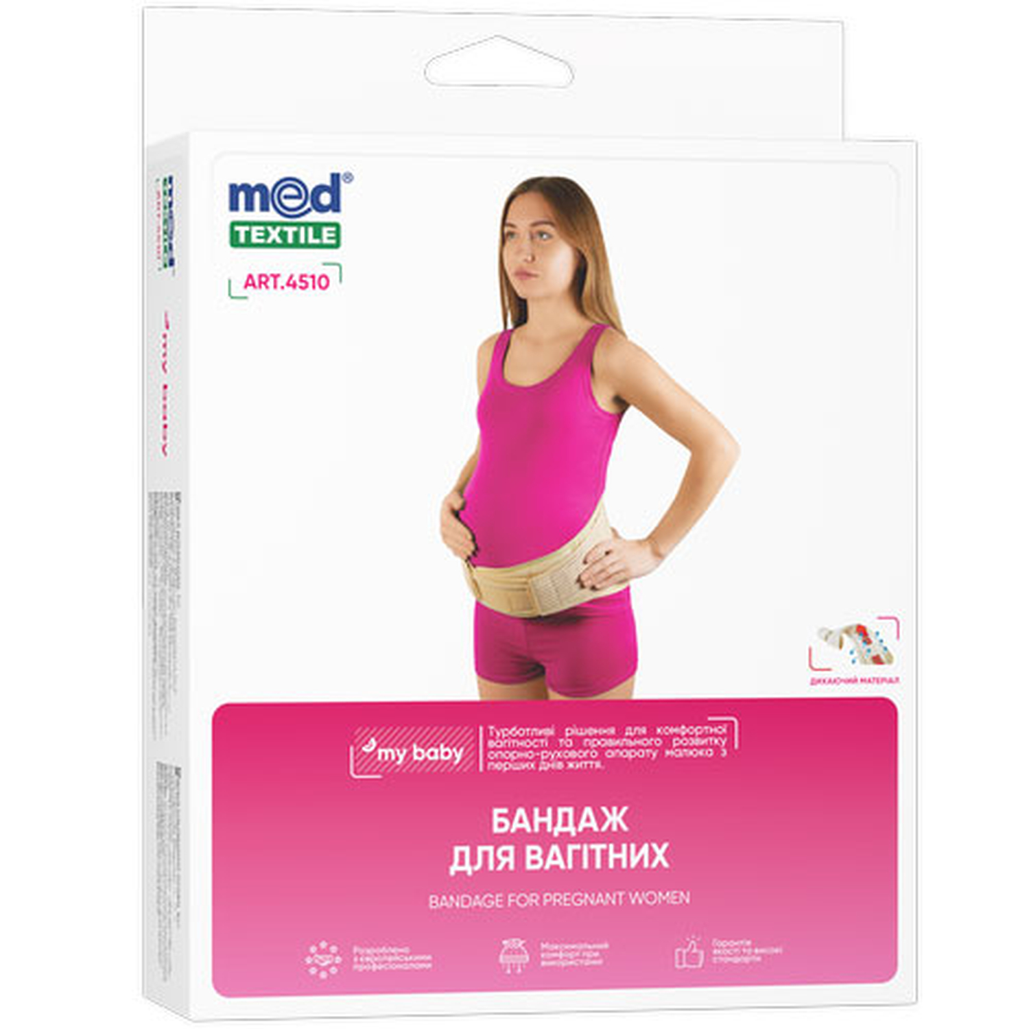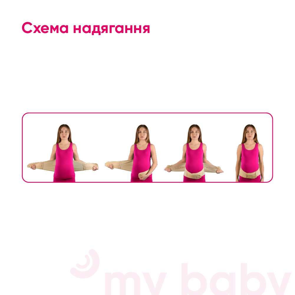 Бандаж для вагітних підтримує живіт під час вагітності та допомагає зняти надлишкове навантаження з поперекового відділу хребта і перерозподілити м'язову напругу поперекової області більш рівномірно на будь-яких термінах вагітності (від початку другого триместру до пологів), особливо при тривалому статичному навантаженні, під час ходьби, напруги поперекової області або при появі болю в попереку. М’яко підтримуючи живіт, бандаж забезпечує оптимальні умови для правильного положення плоду.
