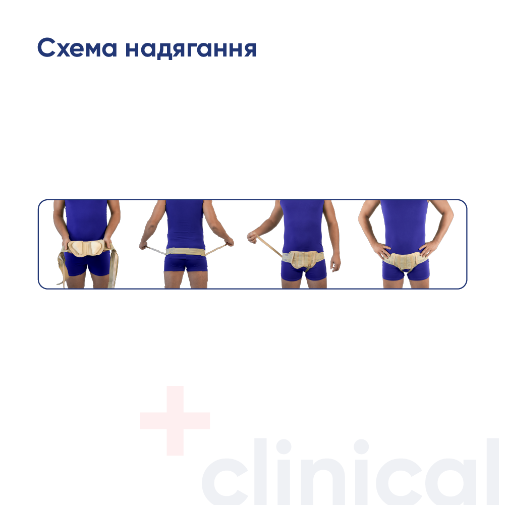Бандаж грижовий уніфікований застосовується при пахових і стегнових грижах, коли оперативне лікування протипоказане або не може бути проведене в прийнятні терміни і рекомендують при високій ймовірності випадання або утиску грижі, а також після операції з пахової або стегнової гриж. Бандаж використовується для попередження збільшення грижі при значних фізичних навантаженнях, пов’язаних з підняттям ваги.