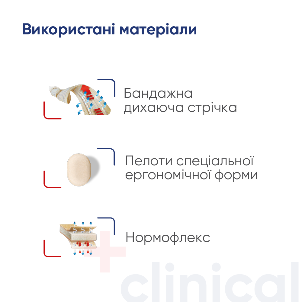 - Повітропроникний полегшений матеріал бандажа забезпечує максимальний комфорт при використанні