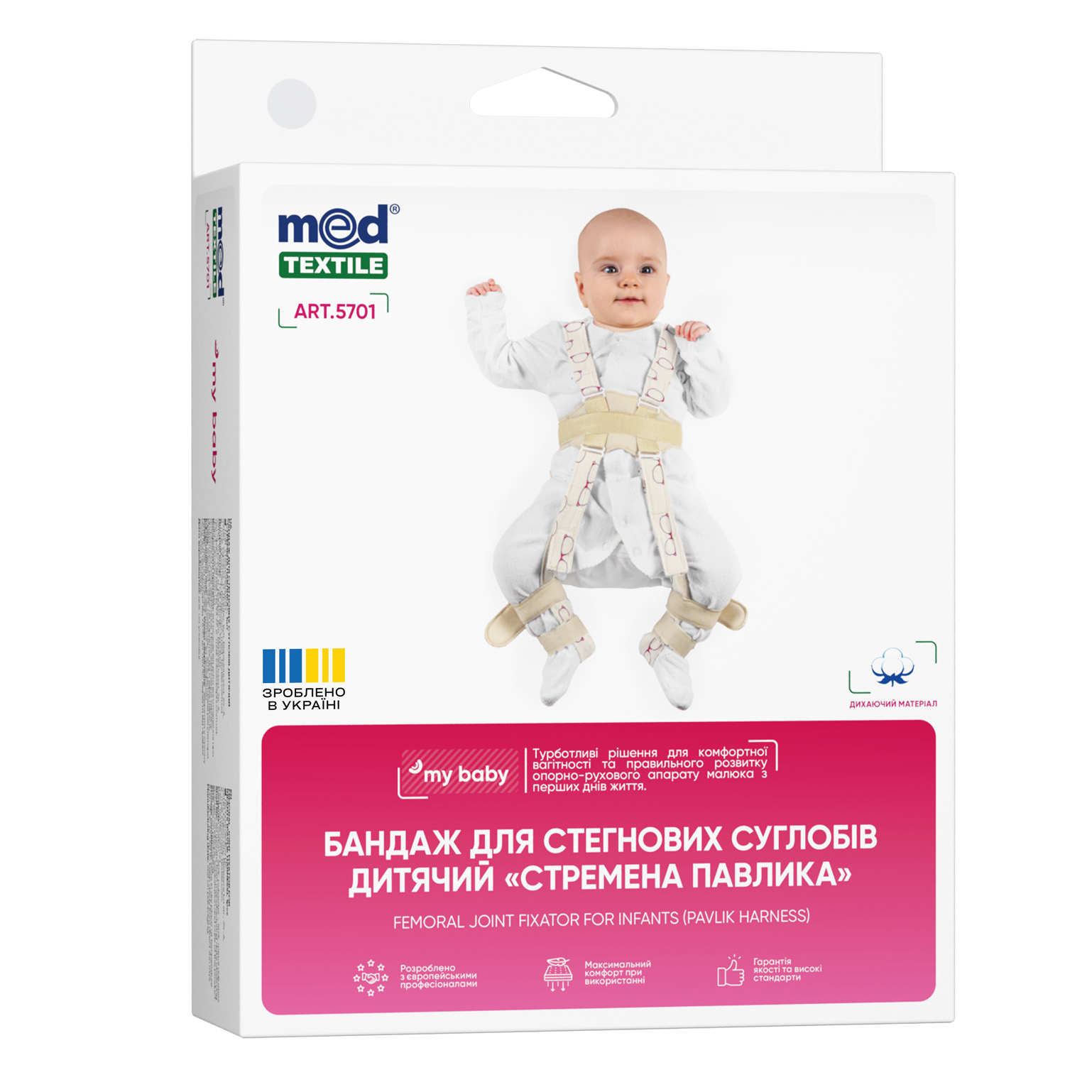 Дитячий бандаж застосовують у разі дефекту та дисплазії кульшових суглобів, підвивиху та вивиху голівки стегна. Бандаж фіксує та зберігає необхідне для одужання фізіологічно правильне положення кінцівок та обмежує згинання і розгинання суглобів. Бандаж можна одягати на тіло завдяки натуральним матеріалам на внутрішній стороні виробу або поверх одягу. Рівень фіксації регулюється ременями та липучками, залежно від розмірів дитини та ступеню фіксації.