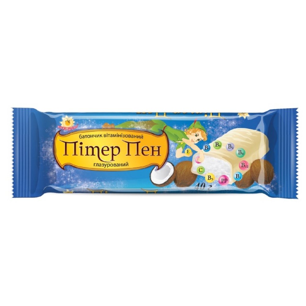 Батончик у білій кондитерській глазурі, на основі ніжної м'якоті кокосу.
