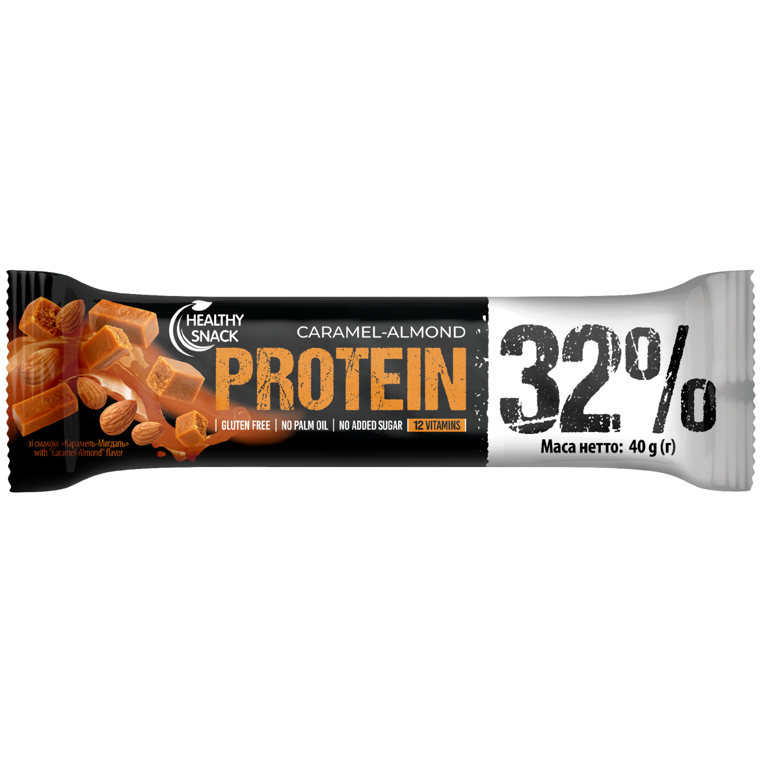 Протеїновий батончик у дієтичній шоколадній глазурі зі смаком "Карамель-мигдаль". У складі 32% протеїну! Без додавання цукру! Містить унікальний комплекс вітамінів: вітамін С, вітамін РР, вітамін Е, вітамін В5, вітамін В6, вітамін В2, вітамін В1, вітамін A, фолієва кислота (вітамін В9), біотин (вітамін В7), вітамін D2, вітамін В12.