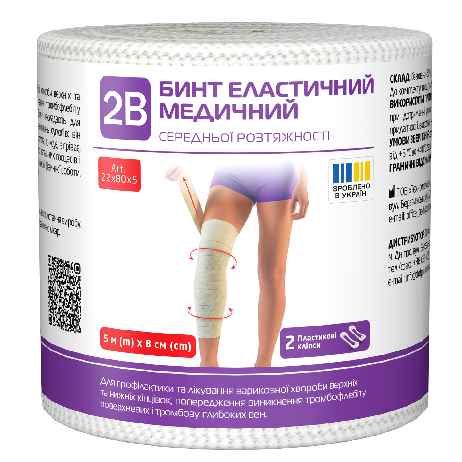 Бинт еластичний 2В середньої розтяжності 5 м x 8 см