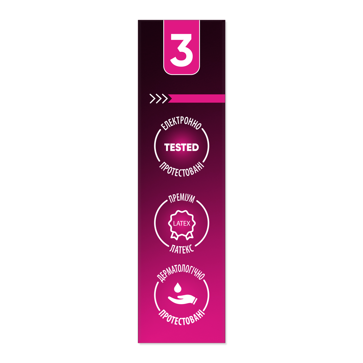 Протипоказання та запобіжні заходи: презервативи виготовлені з натурального латексу, що в деяких випадках може викликати алергічну реакцію, включаючи анафілактичний шок.