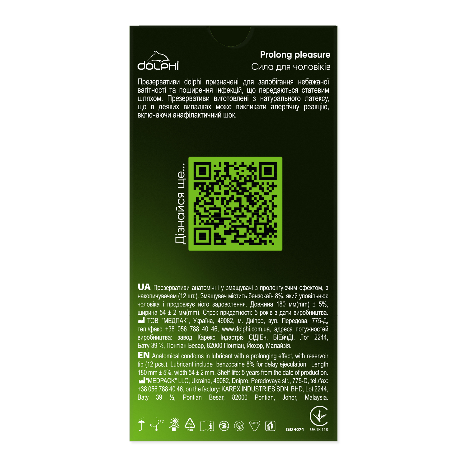Презервативи Dolphi Prolong pleasure створені для чоловіків, які хочуть подарувати жінці якомога більше насолоди. Анестетик всередині Dolphi Prolong pleasure здатний уповільнити еякуляцію та дозволить партнерам не турбуватися про ранній фінал.