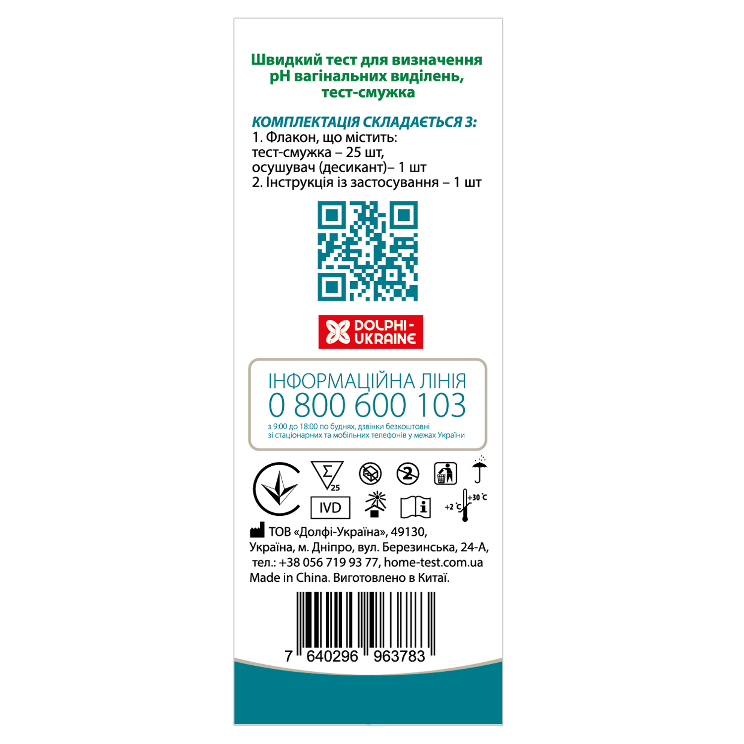 До складу входять 25 тест-смужок pH вагінальних виділень, що забезпечує зручність і економічність використання протягом тривалого часу, дозволяючи регулярно контролювати стан вагінального здоров’я та своєчасно виявляти можливі порушення.