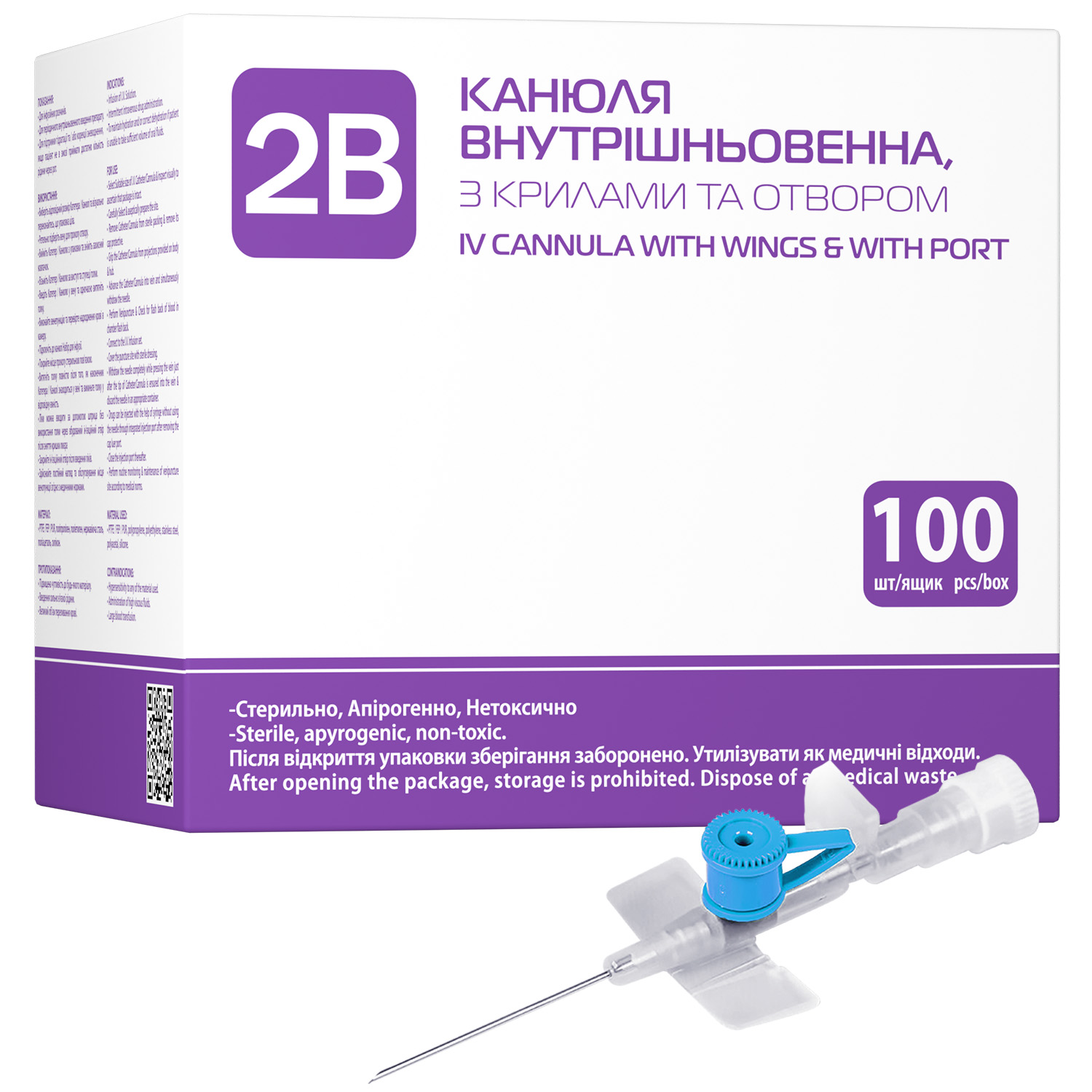 Канюля внутрішньовенна 2B 22G (0,9 x 25 мм) блакитна, 100 шт
