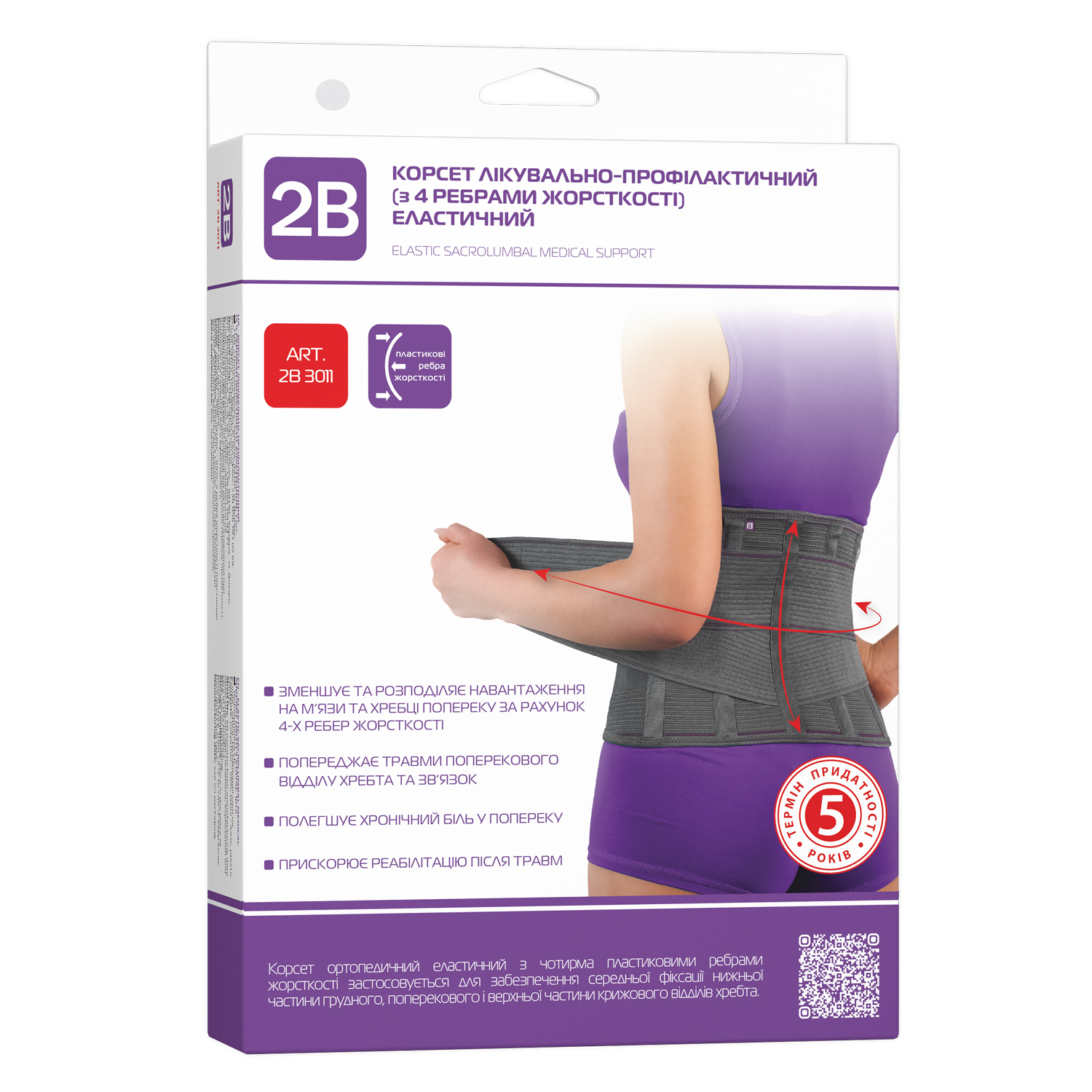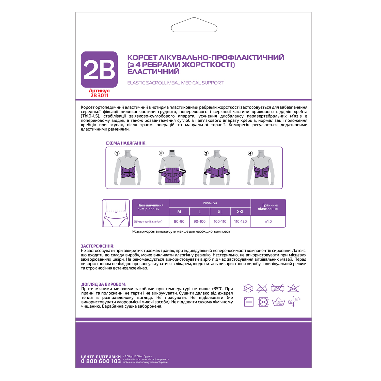 Корсет з 4 ребрами жорсткості лікувально-профілактичний 2B артикул 3011 еластичний, розмір XXL