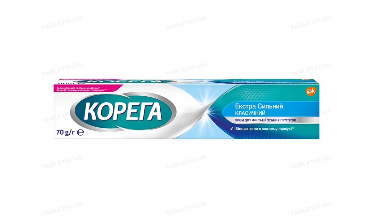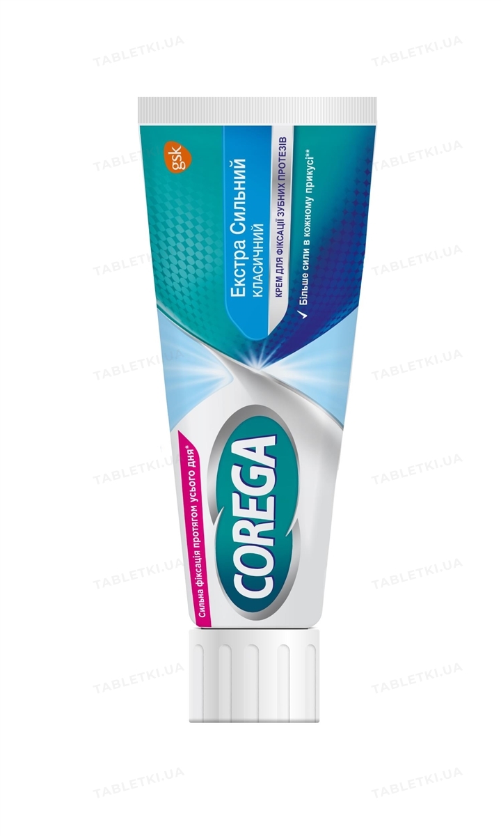 Надійна фіксація зубного протеза додасть Вам впевненості і дозволить піклуватися про більш важливі речі. Якщо Вам необхідна надійна фіксація на цілий день і відчуття свіжості, то Крем Корега Екстра Сільний- це той продукт, який Вам потрібен.