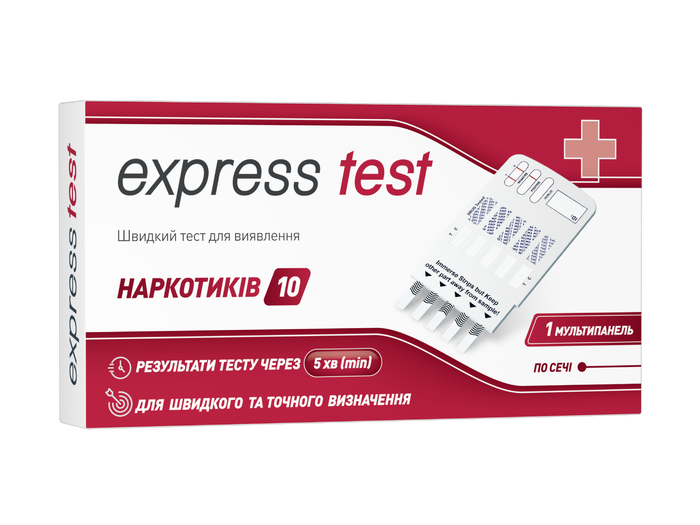 Швидкі тести на виявлення наркотиків Express Test - це одноразові мультипанелі, що виявляють в домашніх умовах факт вживання наркотиків. При вживанні наркотиків, в організмі людини утворюється метаболіт, який можливо виявити за допомогою тесту відповідно до вживаної речовини. Виявлення наркотичних речовин та їх метаболітів засновано на специфічній взаємодії антиген-антитіло шляхом латерального проточного хроматографічного імуноаналізу. Сліди наркотиків, при проведенні такого тесту, можуть бути виявлені навіть через кілька днів після їх прийому.