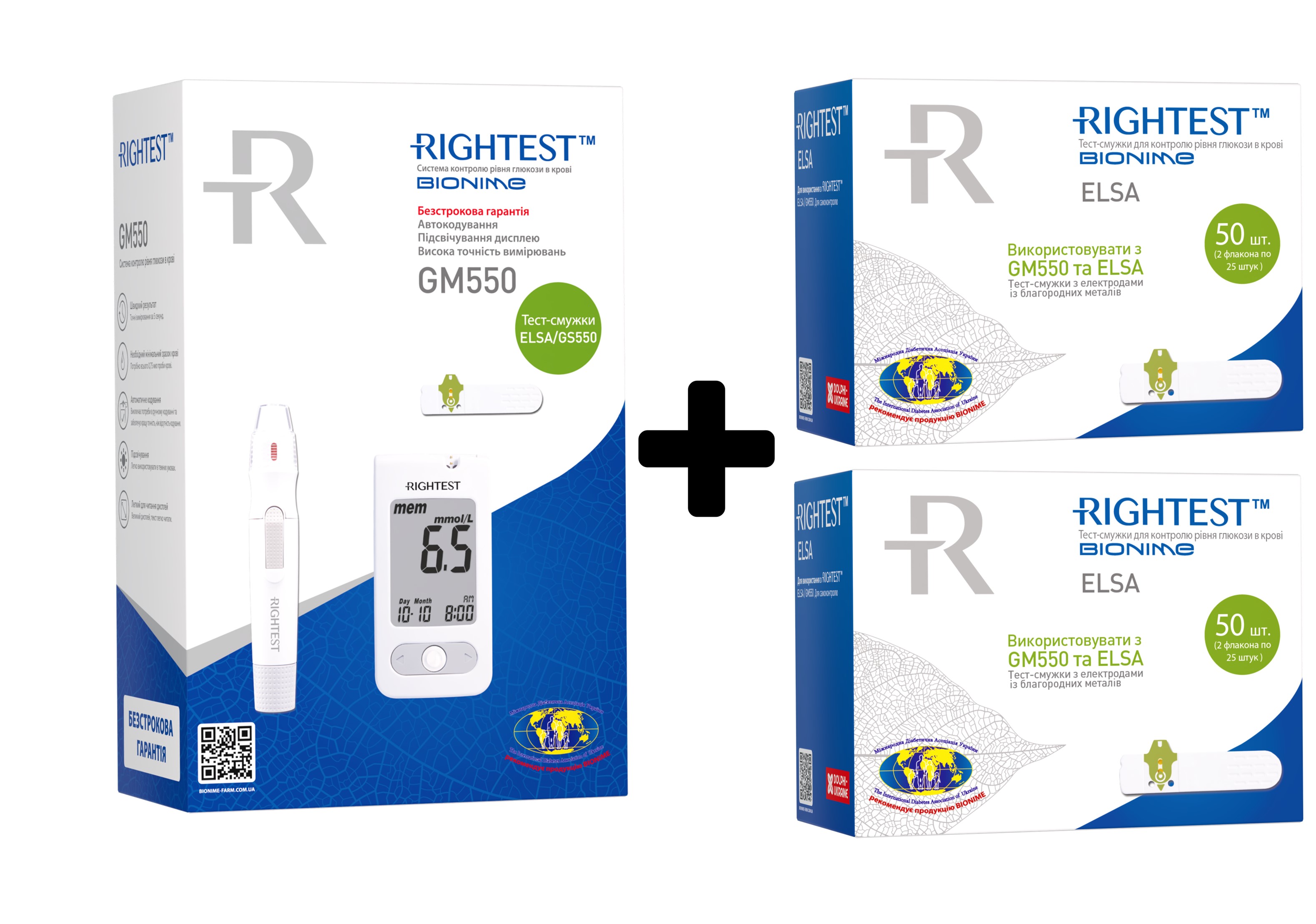 Тест-смужки Rightest ELSA використовуються з глюкометрами Rightest GM550 та Rightest ELSA.