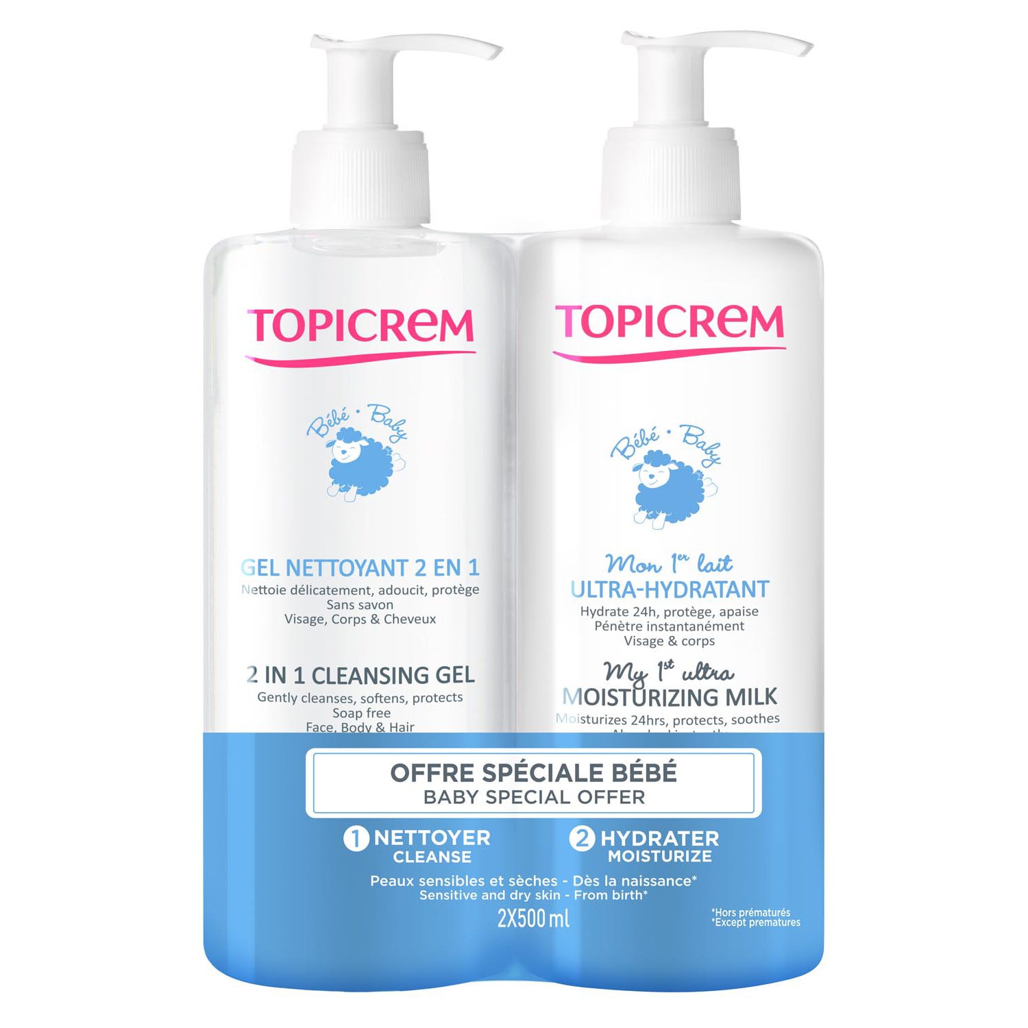 Набір Топікрем Моє 1е ультра зволожувальне молочко + 2-в-1 очищуючий гель.
