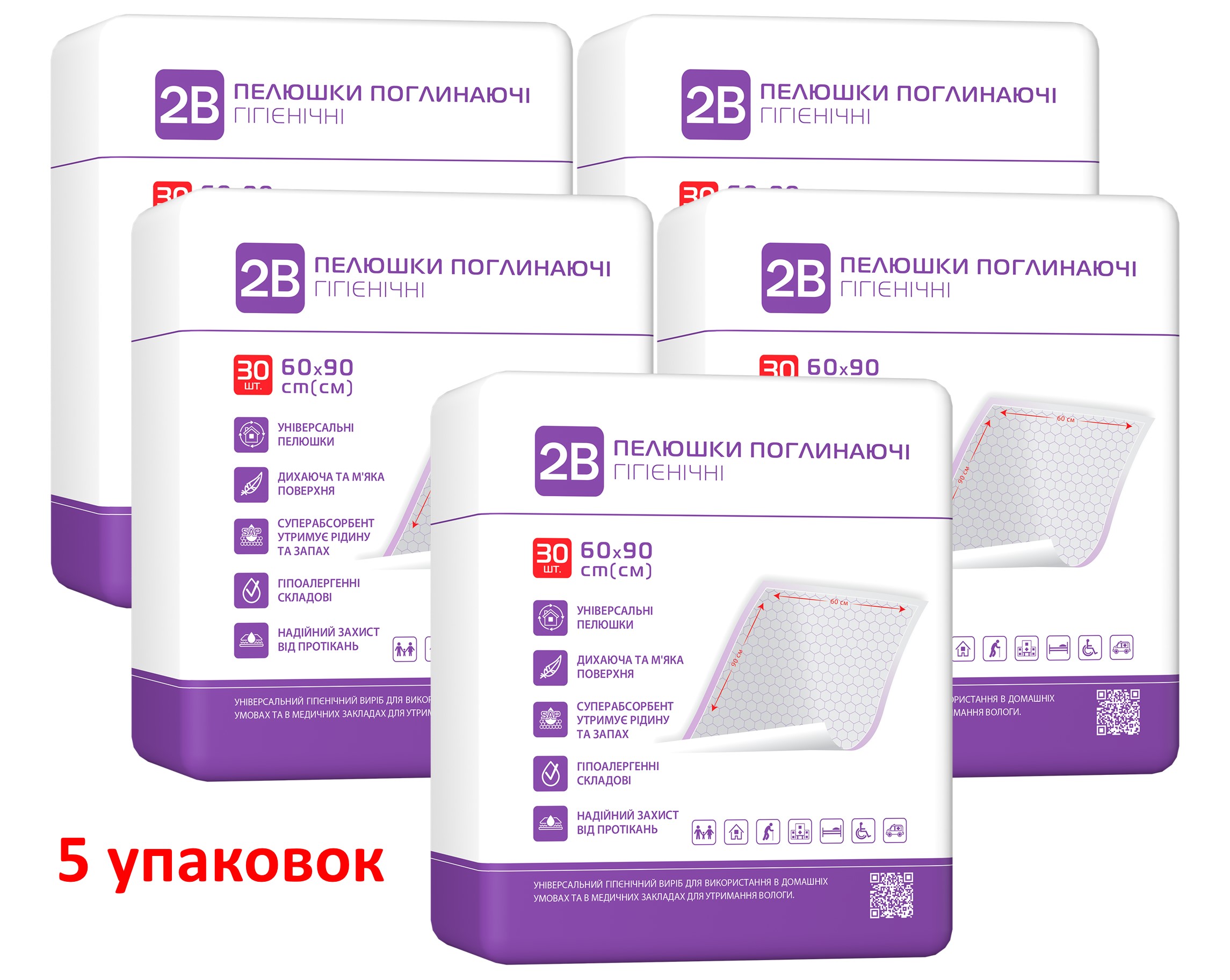 Одноразові пелюшки гігієничні 2В, розмір 60х90 см 150 шт
