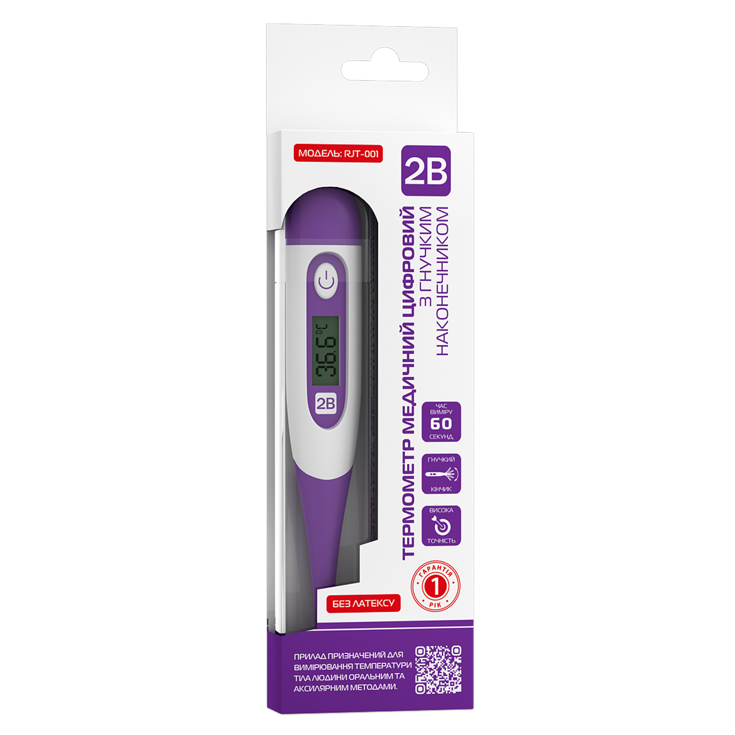 Термометр медичний цифровий, RJT-001 з гнучким наконечником забезпечує безпечне, точне та швидке вимірювання температури тіла людини оральним (у роті) та аксилярним (під пахвою) методами. Не містить ртуті, що робить його максимально безпечним для всіх членів сім'ї. Пройшов всі клінічні випробування, має високу точність вимірювань і відповідає європейським та українським стандартам. Розроблений з урахуванням потреб медичних фахівців, має відмінні експлуатаційні показники та рекомендується для застосування як в клінічних, так і в домашніх умовах.